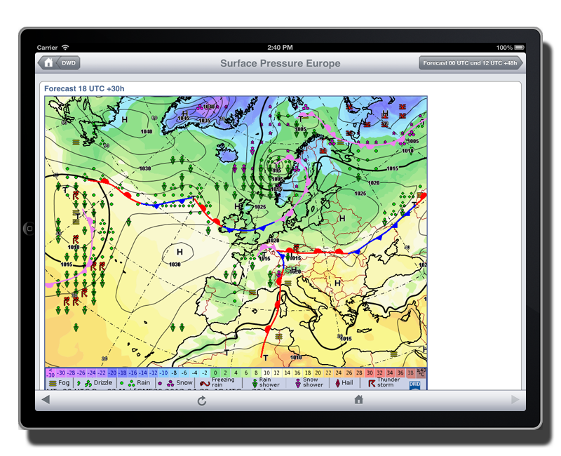 See selected online resources for finding out more about the current weather situation. General information is displayed that is not available as GRIB files, such as graphics for: